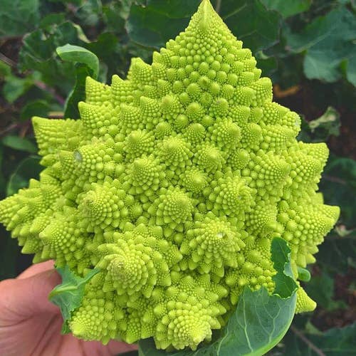 Romanesco Broccoli is a type of Brassica that was first grown via selective breeding around the fifteenth century in Italy. The plant is also believed to be a cross between broccoli and cauliflower. It tastes delicious and has a flavor of both broccoli and cauliflower but milder, which makes it perfect for salads and sandwiches.