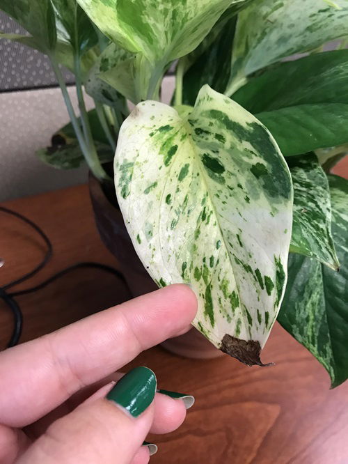 Yellow, brown, or black spots on the pothos can be an issue that indicates a pest problem. Mealybugs, aphids, thrips, and spider mites can feed on the leaves and stems.